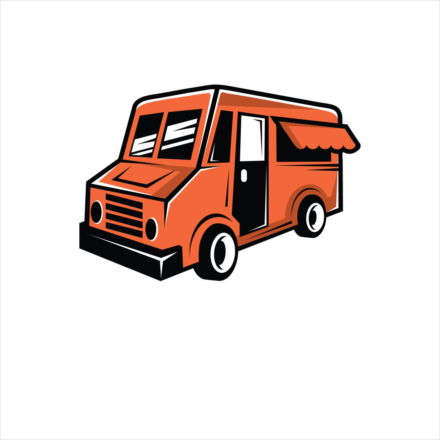 Food truck logo template. Street food cart vector design. Retro food truck logotype, Mobile cafe car logo background. Festival shop transport to cook and sell meals
